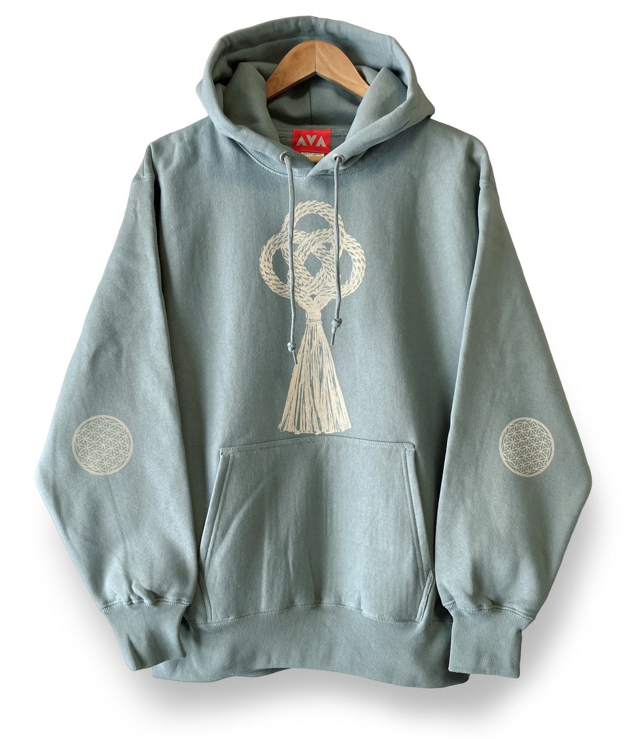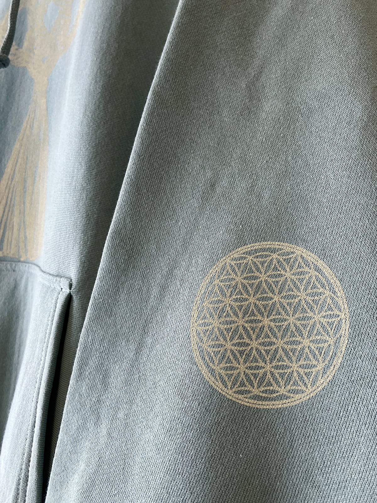 袖の肘部分にフラワーオブライフのプリントが入ってます。