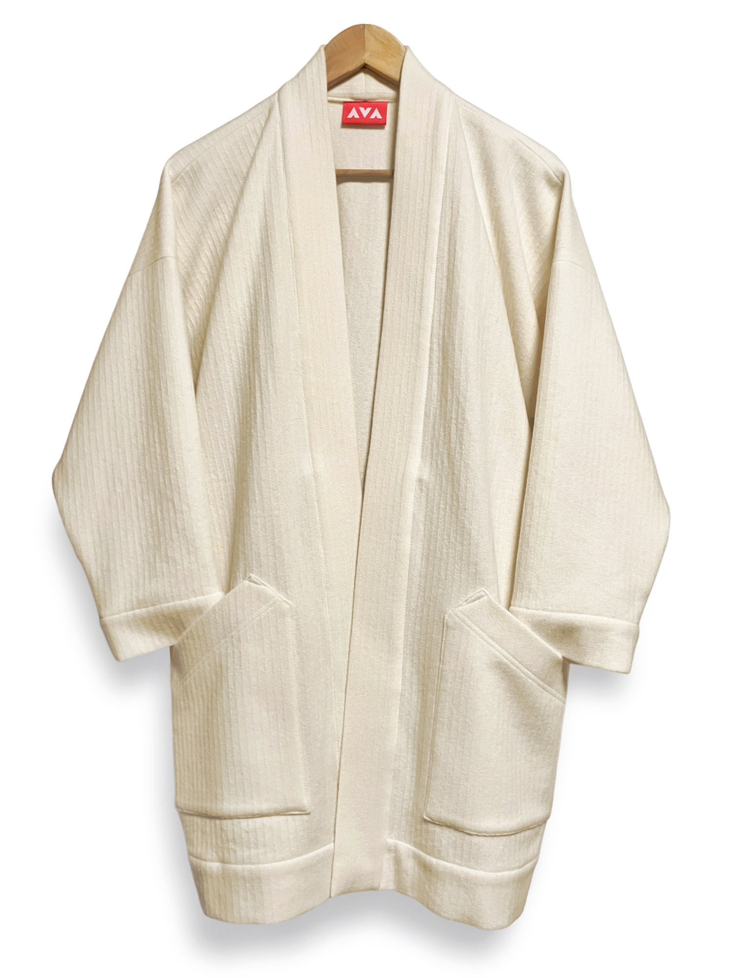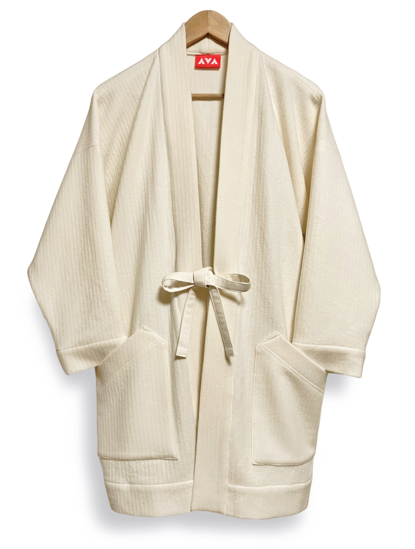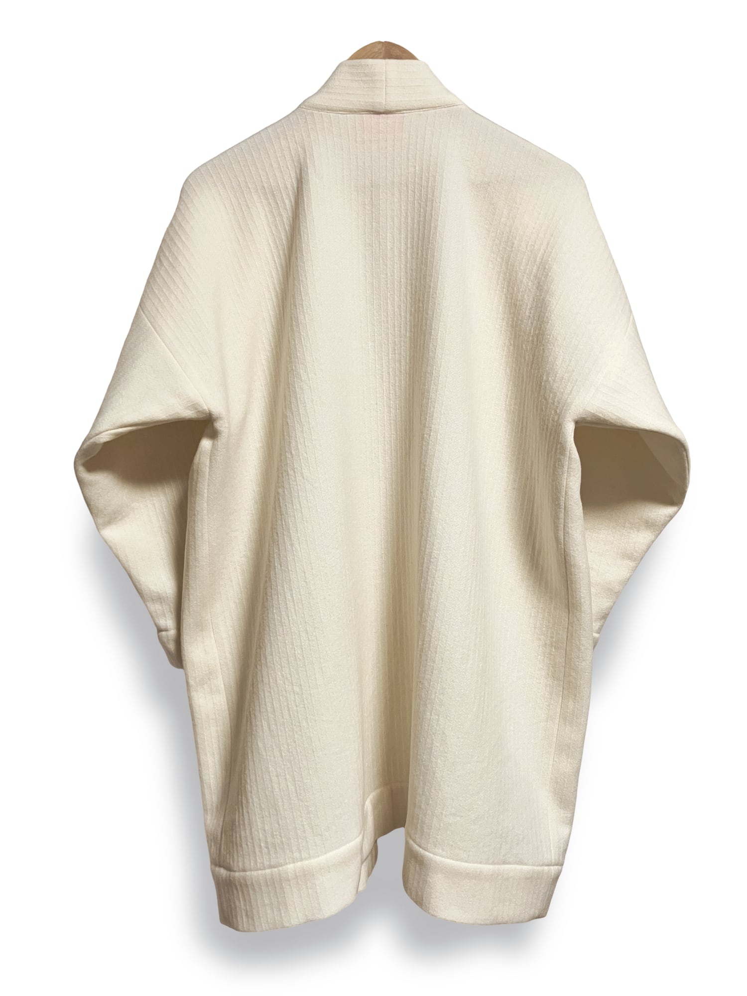 織で縦にうっすらストライプ模様の入った一重仕立てのやわらかなウールの羽織です。